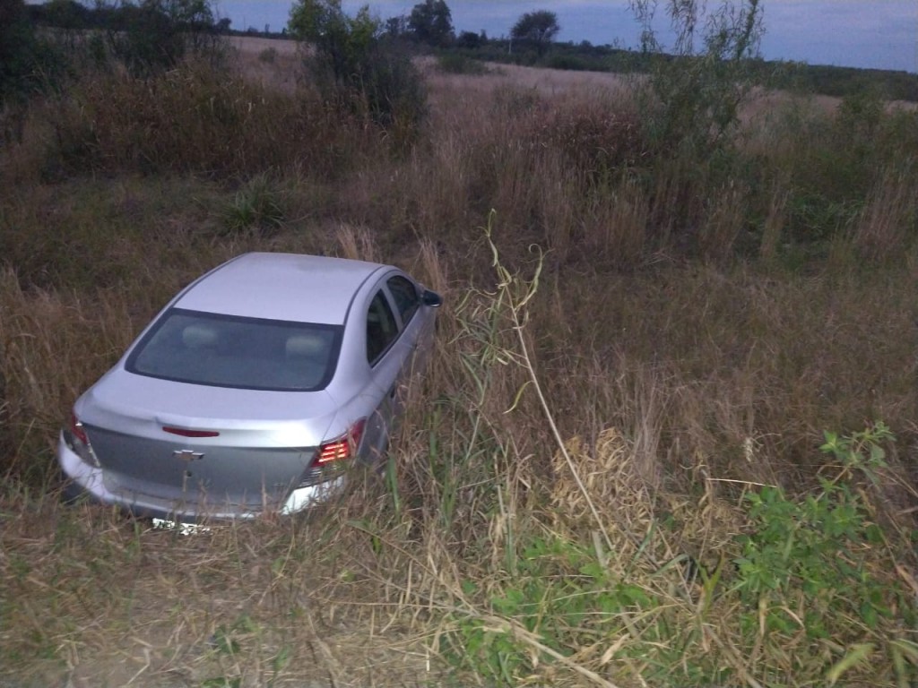 Constituida la prevención establecen la veracidad de lo informado, tratándose de un automóvil, CHREVROLET PRISMA JOY, tipo Sedan 4P, color gris, Dominio AB278LQ, propiedad de la joven R.D.M., de 20 años, domiciliada en LOTE 57, zona rural colonia El Cabure, distante a unos 20 km de nuestra ciudad. El cual hallábase estacionado a la vera de Av. Binaghi, sin freno de mano colocado, y sin ocupantes, se desplazó, cayendo al canal sin agua.