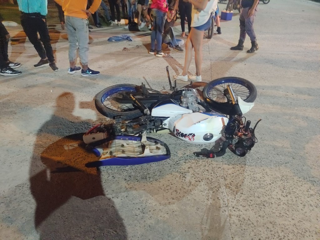 Esta mañana a las 06:00 horas personal de la Comisaría de La Tigra, constató un accidente de tránsito en calle Neuquén y 9 de Julio, siendo participe una motocicleta MOTOMEL, S2 150 c.c., color blanco con negro, sin dominio guiada por H. M. N. de 23 año, con domicilio en la planta urbana quién resultó lesionado.