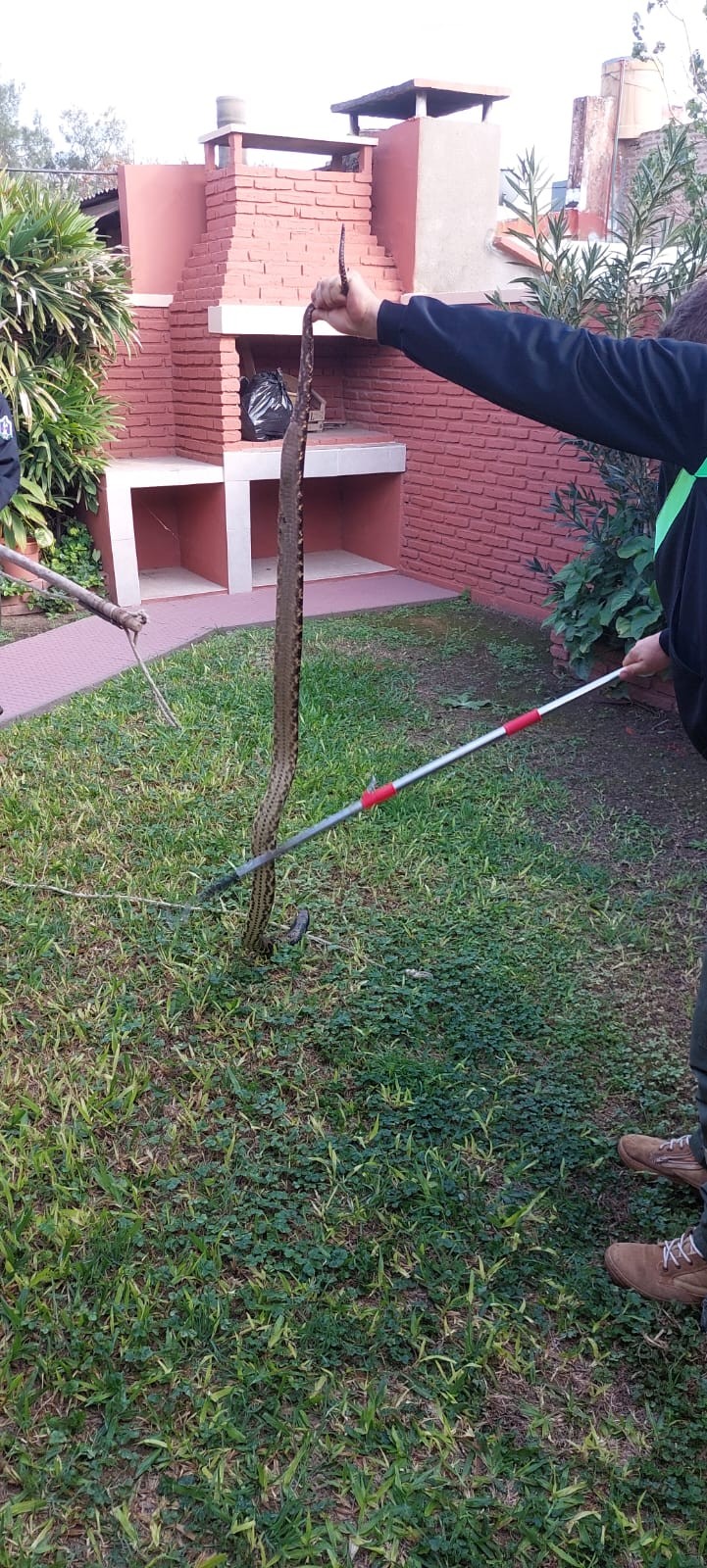 Esta mañana, alrededor de las 09:30 horas, a través de un llamado telefónico al abonado gratuito Nº100, un ciudadano de 78 años del barrio San Cayetano informó sobre la presencia de una serpiente en el patio trasero de su finca.