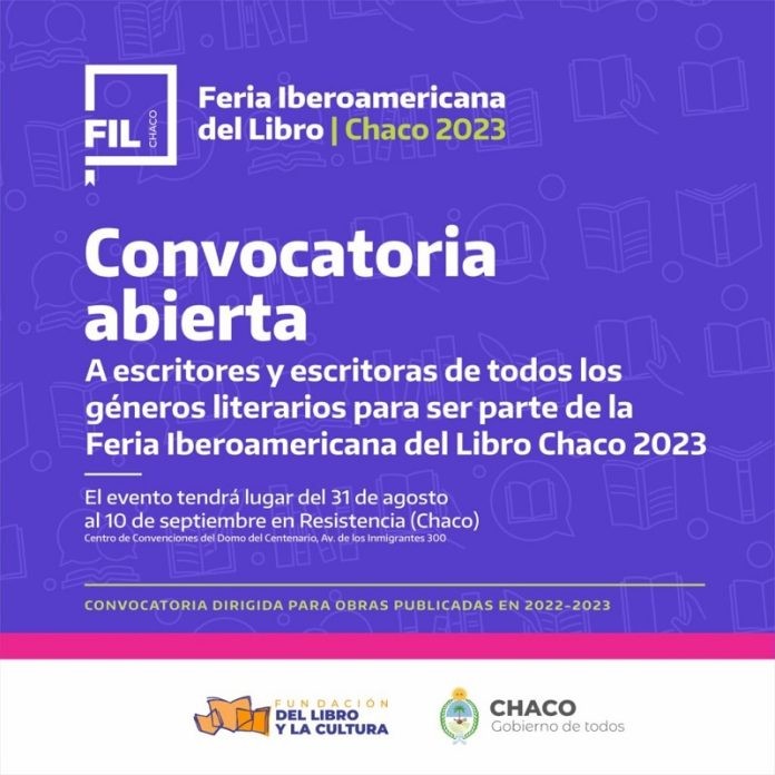 Desde la organización de la edición 2023 de la Feria Iberoamericana del Libro Chaco (FILC) convocan a escritores nativos o residiendo en Chaco con más de 3 años de antigüedad, que hayan publicado libros entre 2022 y 2023 y estén interesados en presentar su obra. Con entrada gratuita y libros a mitad de precio, la Feria se realizará del 31 de agosto al 10 de septiembre en el Domo del Centenario de Resistencia.
