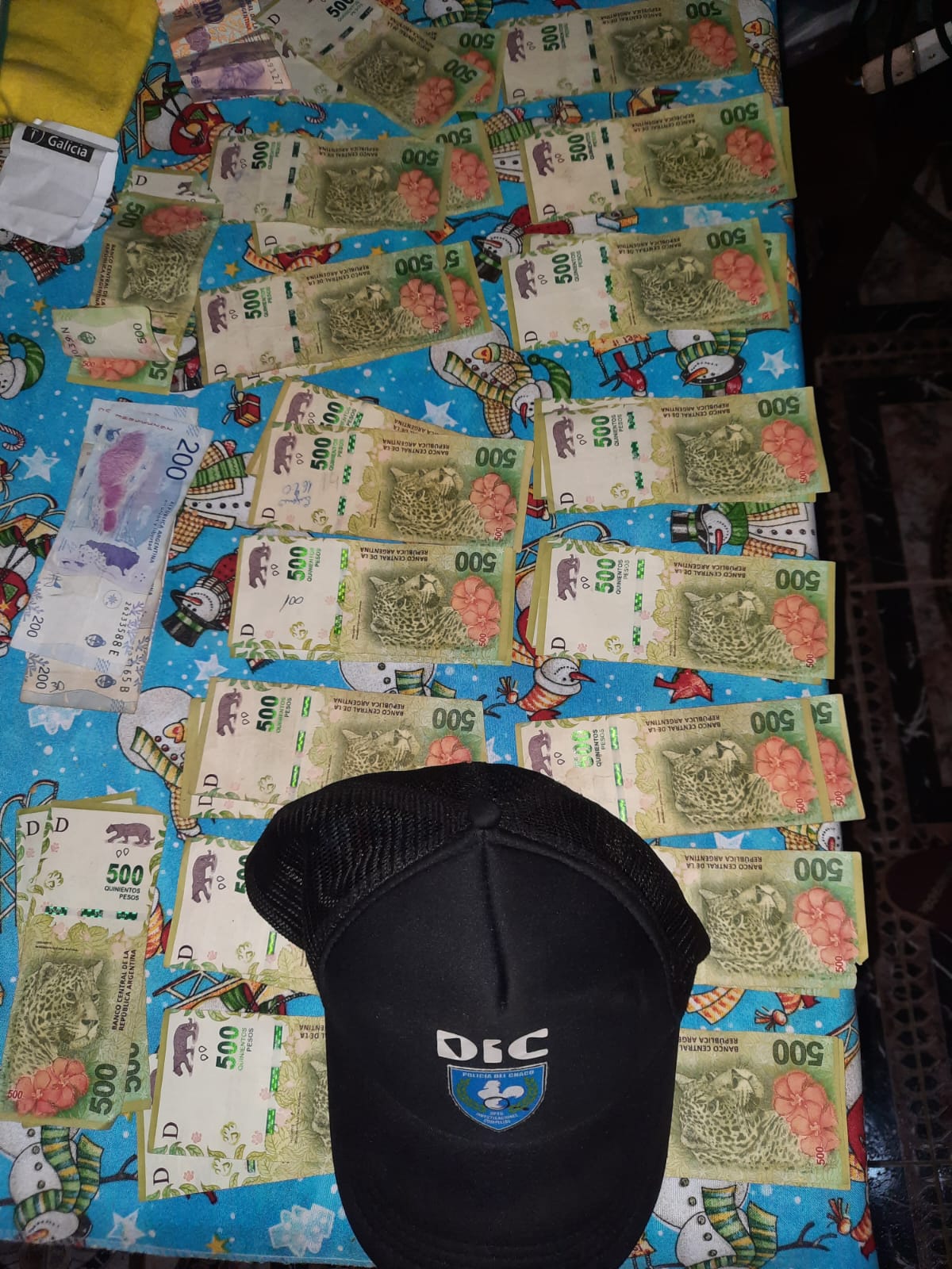 Con la orden judicial emitida por el Juzgado de Garantías, el personal policial realizó dos allanamientos simultáneos en los domicilios del barrio San Cayetano y del barrio Solidario, donde se secuestraron prendas de vestir que coincidían con las utilizadas por el ladrón en los hechos, así como parte del dinero sustraído. En el domicilio del barrio San Cayetano se halló un pantalón, un suéter, un buzo con capucha y unas zapatillas relacionados con los diferentes hechos y demoraron al ciudadano de 46 años. En el domicilio del barrio Solidario, se encontró la suma de $19.850 pesos.