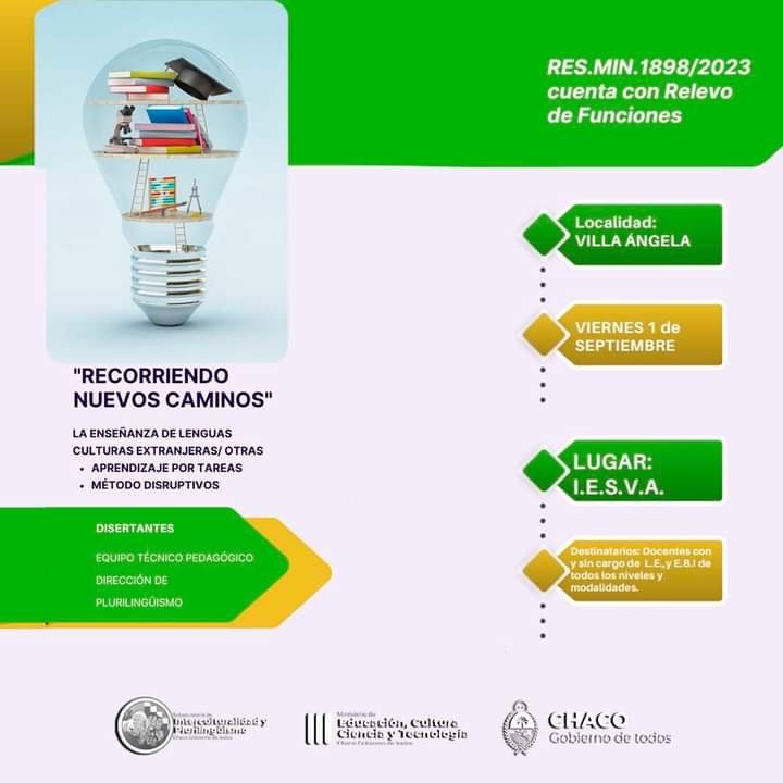 Villa Ángela: RECORRIENDO NUEVOS CAMINOS | Capacitación destinada a docentes con y sin cargo de lengua, culturas extranjera y maestros bilingües interculturales