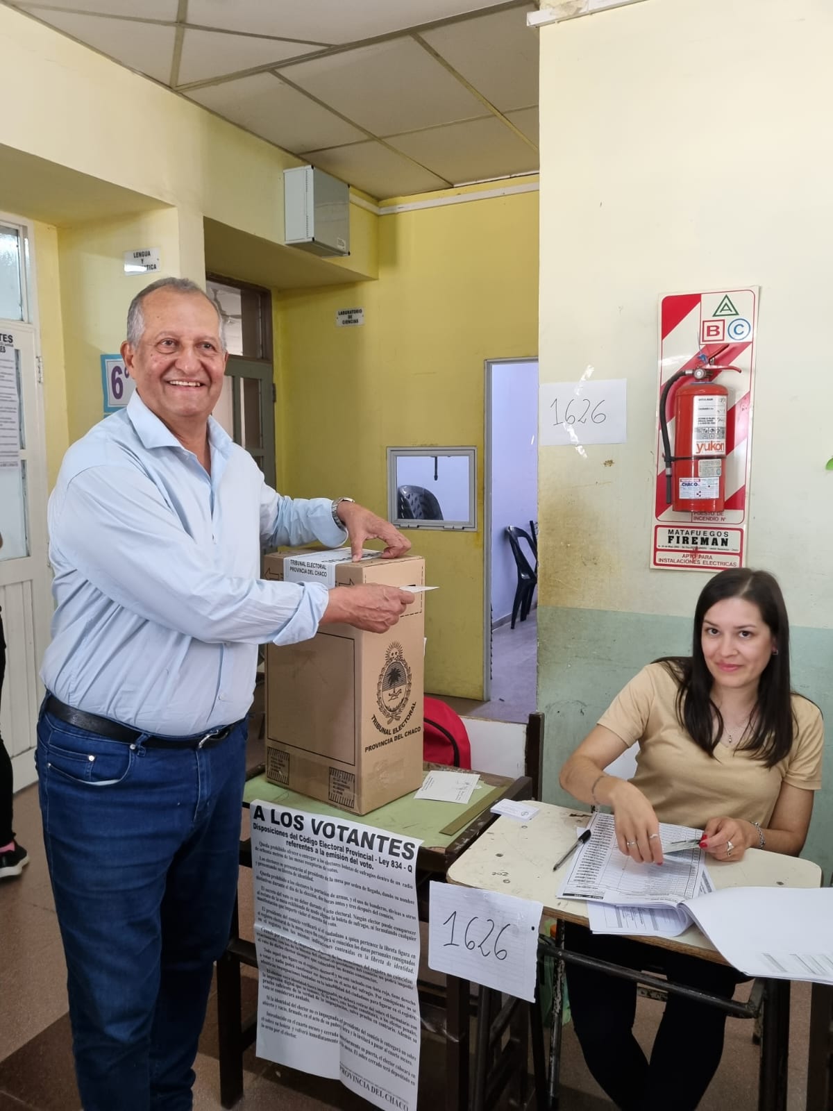 El intendente de la municipalidad de Villa Ángela, ing. Adalberto Papp emitió su voto en la mesa N° 1626 de la Escuela 1001
