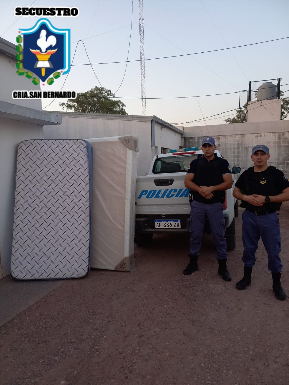 El lunes por la tarde una mujer de 23 años denunció que personas desconocidas sustrajeron en horas de la siesta un colchón y un somier de una plaza marca King desde su domicilio, previo a forzar la puerta de ingreso y mientras la denunciante no se encontraba en su casa. Rápidamente personal policial de dicha localidad emprende la investigación, logrando momentos más tarde recuperar el domicilio de un masculino con frondoso prontuario delictivo. Los agentes fueron atendidos por la madre del supuesto autor quien entregó el colchón manifestando que su hijo no se encontraba en la localidad.