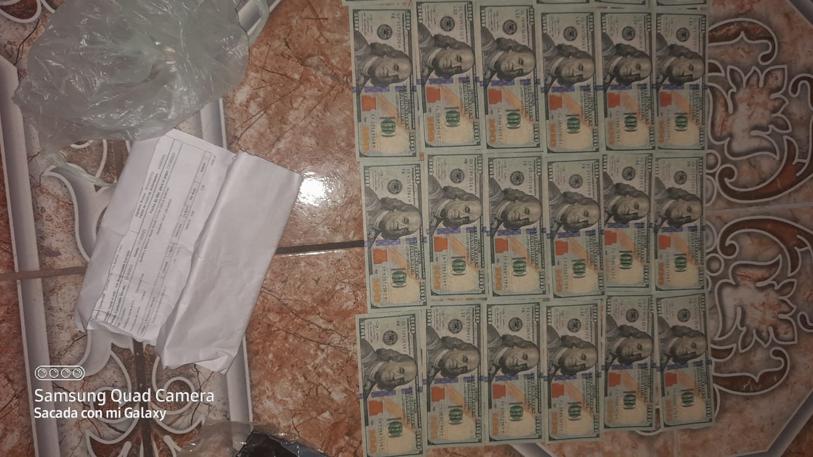 Adem�s incautaron otros tres billetes en el piso de la casa, presumiblemente falsos. Tambi�n, secuestraron una placa bal�stica, 18 cartuchos calibre 22 largo, tres vainas servidas del mismo calibre, una vaina servida calibre 38, cuatro radios port�tiles y un cargador base.