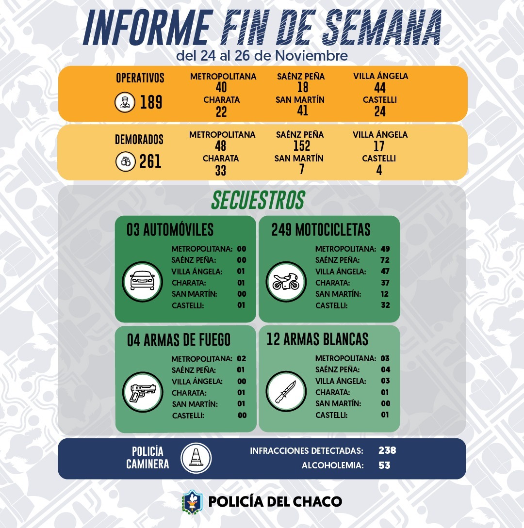 OPERATIVOS DEL FIN DE SEMANA: 261 DEMORADOS EN CHACO