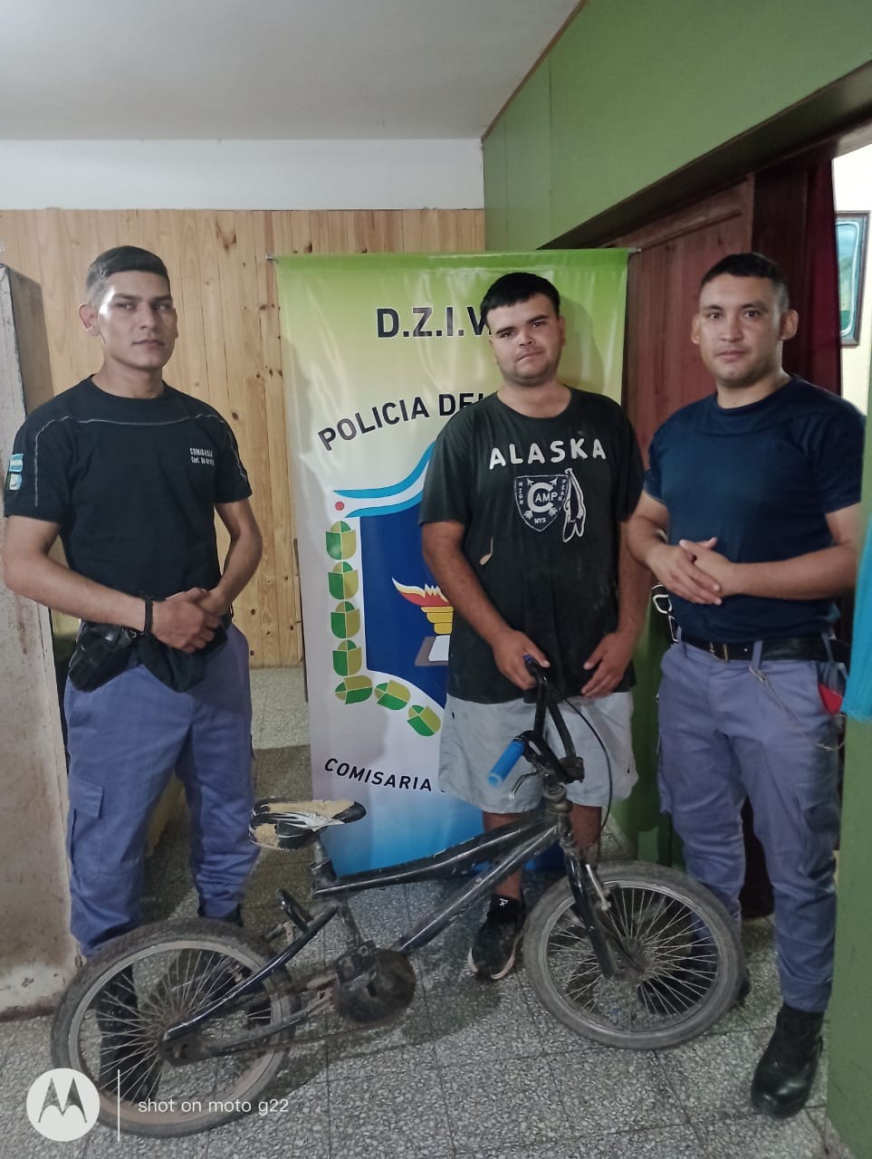 El lunes por la tarde una ciudadana de 42 años se hace presente en la comisaría local a fin de denunciar que desconocidos ingresaron al patio de su domicilio en horas de la madrugada y se llevaron una bicicleta tipo Cross rodado 20. Se comienza con la investigación y luego de una intensa búsqueda y declaraciones de testigos e informantes, los uniformados llegan hasta un domicilio por ex Ruta 95, donde son atendidos por una joven de 19 años que manifestó haber encontrado una bicicleta abandonada frente a su domicilio, haciendo entrega de la misma para deslingarse responsabilidades. Se prosiguen con las tareas investigativas para dar con el supuesto autor.