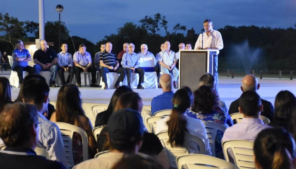 El gobernador encabezó el acto aniversario en el Parque de la Democracia.