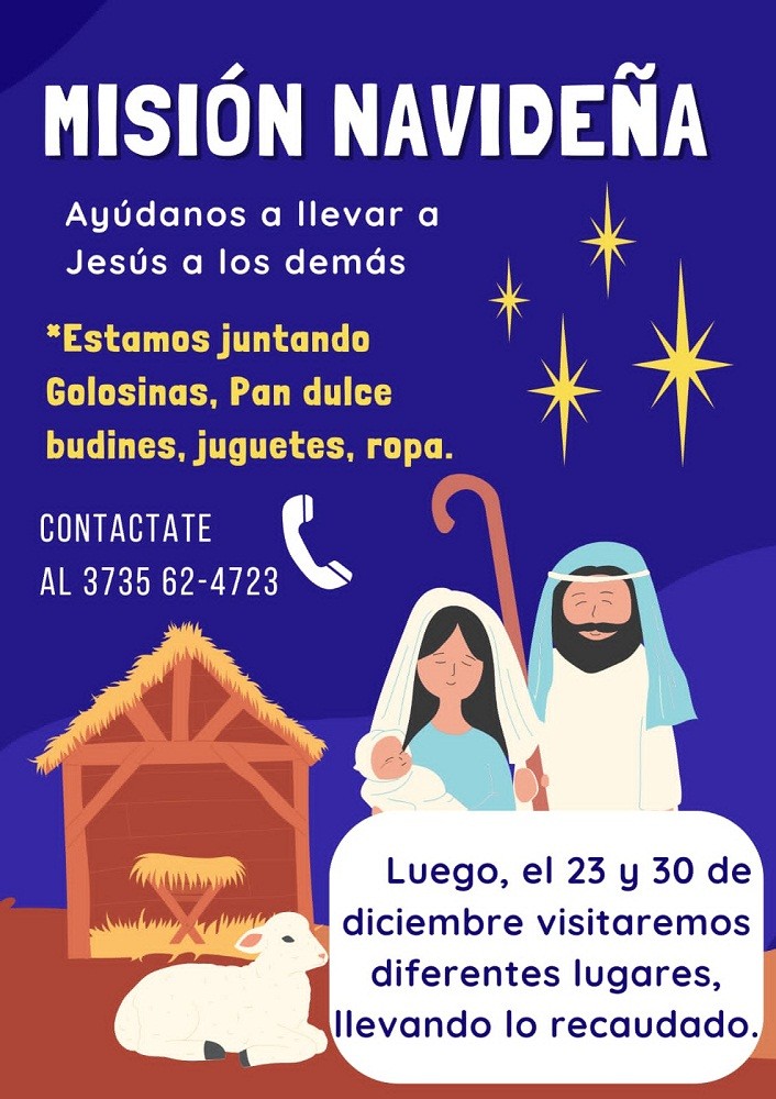 Daniel Oscar Olivares de la Parroquia “Sagrado Corazón de Jesús”, informó sobre la realización de la 3era., Misión Navideña que está llevando adelante y que consiste en recolectar golosinas, pan dulces, budines, juguetes y ropa que luego serán repartidos en diferentes lugares los días 23 y 30 de diciembre.
