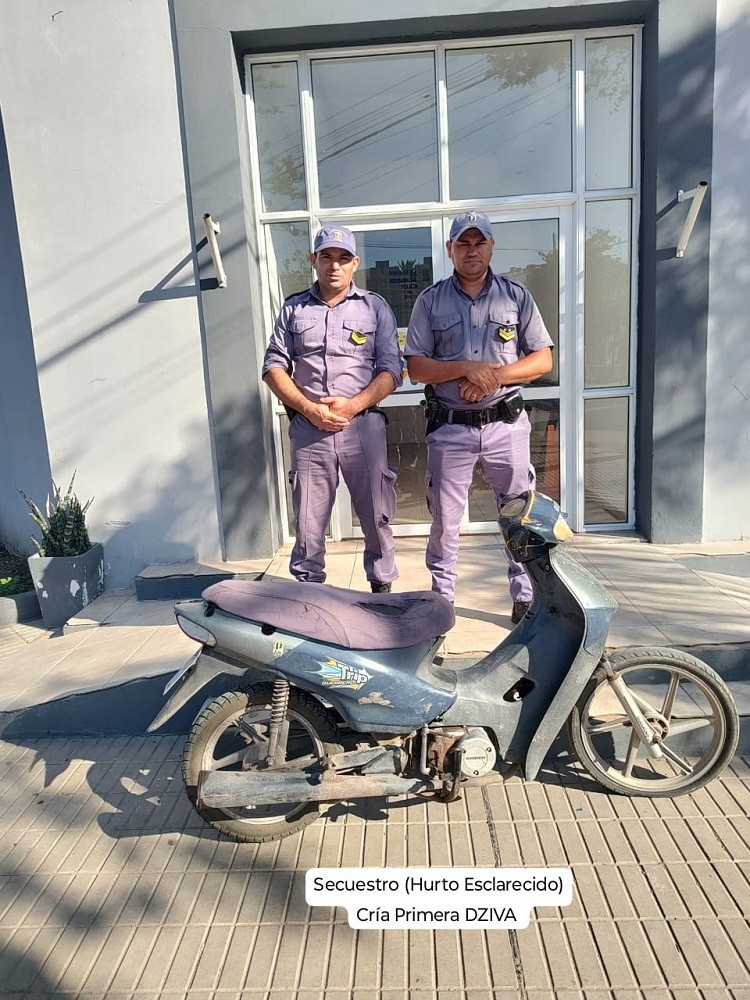 Otro procedimiento por parte de los efectivos de la Comisaría Primera donde el día viernes un hombre de 38 años con domicilio en la localidad de la Tigra, denunció que le sustrajeron su motocicleta marca Korven de 110 cilindradas desde las afueras del Hospital Salvador Mazza. El domingo en horas de la tarde los uniformados de la Comisaría Primera y luego de una investigación toman conocimiento de que el rodado en cuestión, estaría escondido en un baldío por calle Formosa.