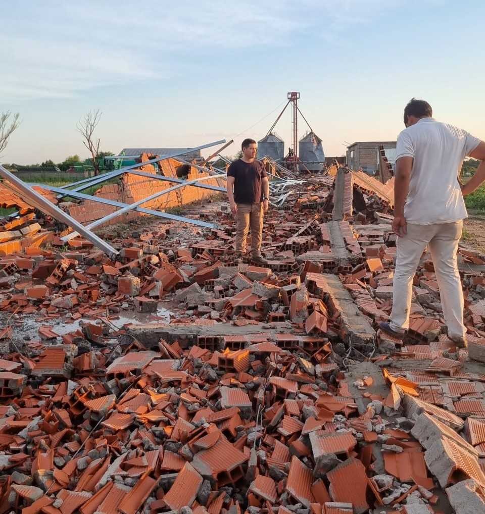 “Muy difícil a veces explicar las cosas con palabras. Nunca vi algo igual desde que tengo uso de razón. Por suerte todos bien”, relató el también productor agrícola, hortícola y avícola, compartiendo fotos que mostraban íntegramente el impacto de los fuertes vientos: tolvas dadas vuelta, silos abollados, techos volados y paredes derribadas.