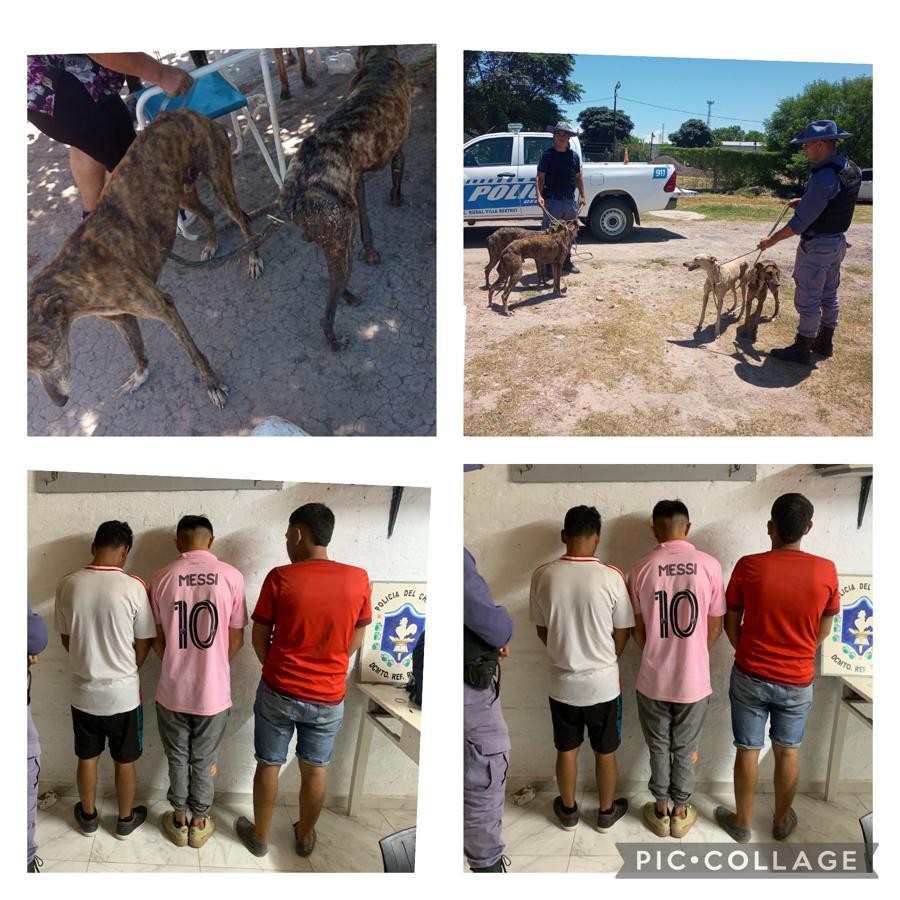 Se comisionó personal a finés investigativos, donde tras ardua tarea investigativa se logró el secuestro de (04) perros, sexo macho cruza raza Galgos, y la conducción de (04) masculinos, tres mayores y un menor. Se instruyen actuaciones contravencionales con intervención juzgado de Paz Villa Berthet. Se continúa con tareas investigativas.