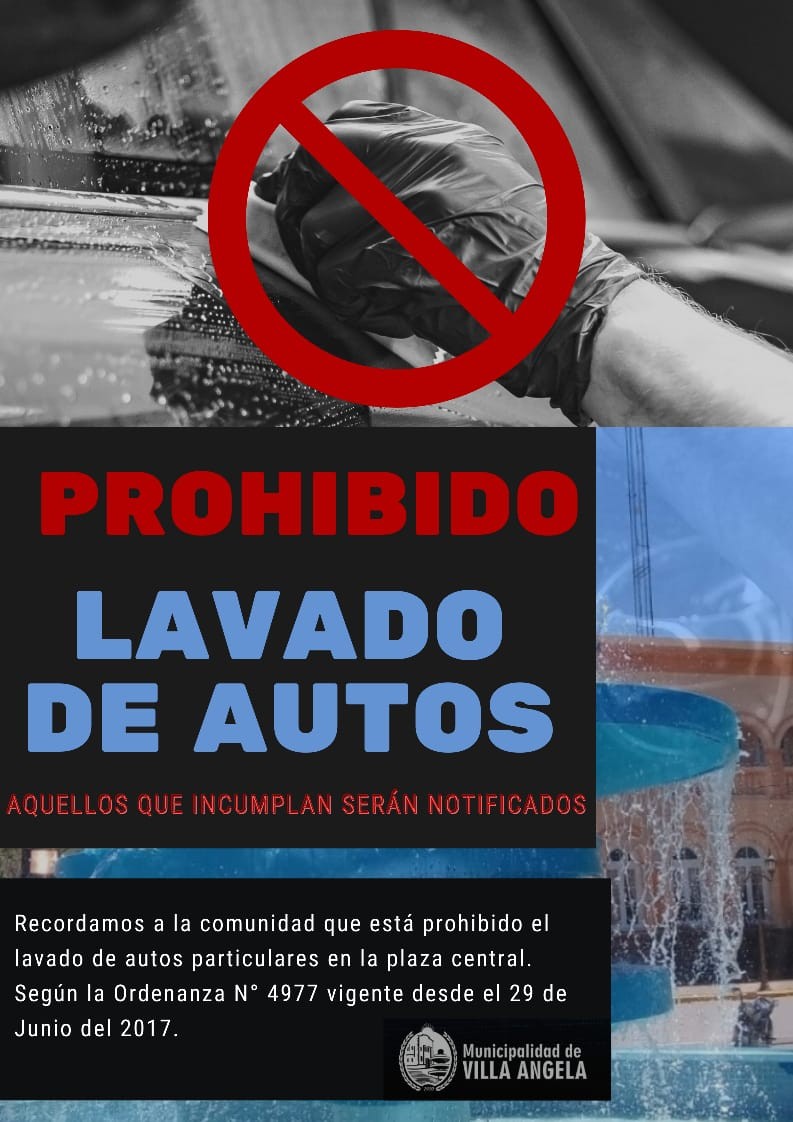 Villa Ángela: SE ENCUENTRA EN PLENA VIGENCIA LA ORDENANZA Nº4977 QUE PROHÍBE EL LAVADO DE AUTOS FRENTE A LA PLAZA CENTRAL
