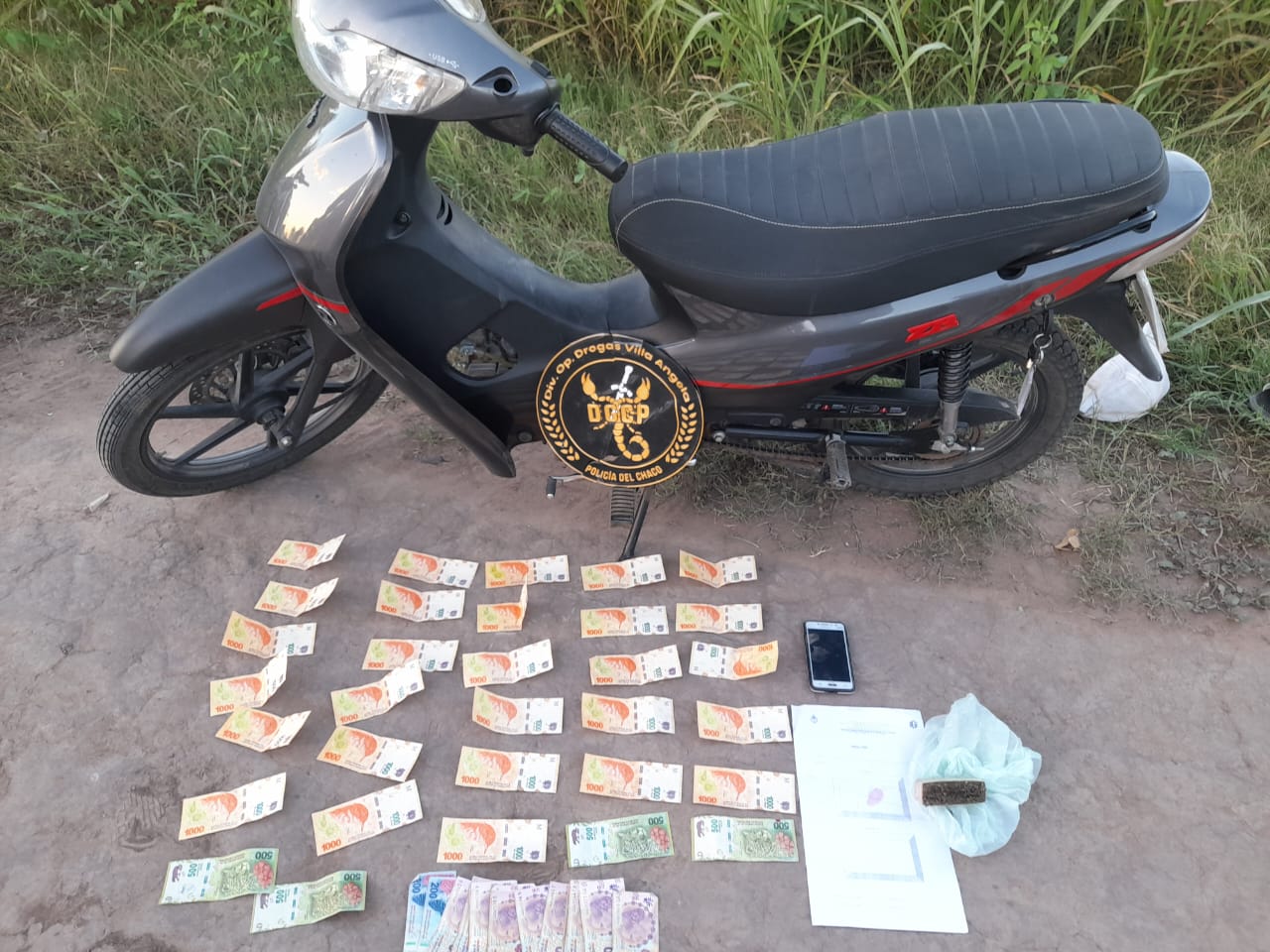 Tras la prueba de la sustancia constataron que se trataba de marihuana con el peso de 102 gramos. Labraron acta de secuestro del estupefaciente como así también de un teléfono celular, la motocicleta y la suma de $32.800 pesos. Los dos hombres de 22 y 34 años fueron notificados de su aprehensión por Supuesta Infracción a la Ley de Estupefacientes N° 23737.