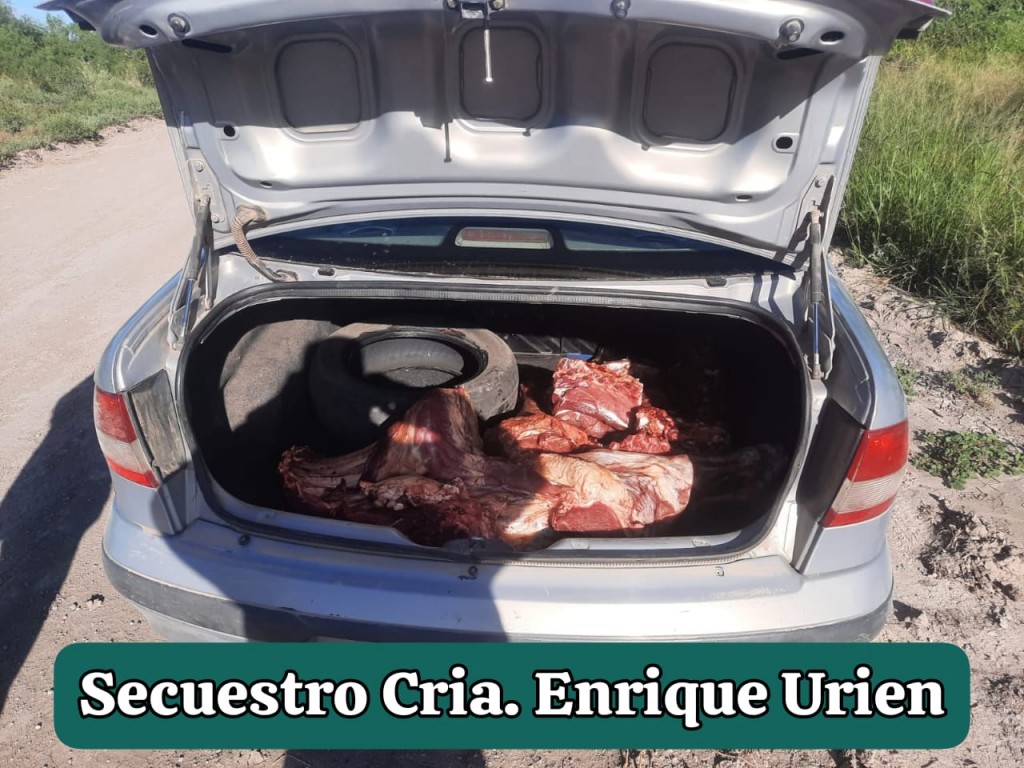 El día martes en horas de la tarde personal de esa unidad en conjunto con efectivos pertenecientes al destacamento la Viruela, realizando recorridas prevencionales por caminos vecinales de esa zona, detienen el paso de un automóvil en el cual iban dos hombres de 53 y 20 años, a quienes se los notaban en estado de nerviosismo, por lo que se les pidió que abrieran el baúl del auto, hallando en el interior del mismo 40 kg., de carne vacuna, un cuchillo y una chaira, quienes no supieron explicar la procedencia de dichos elementos.