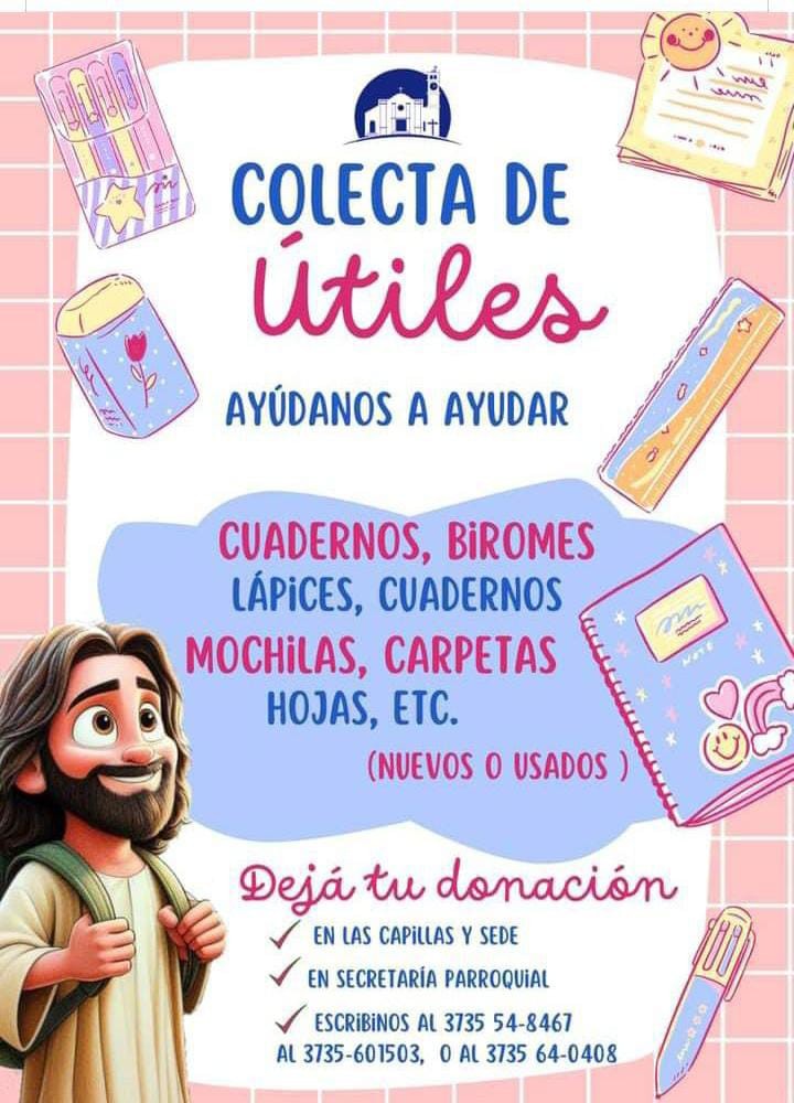 Villa Ángela: COLECTA DE UTILES ESCOLARES | Jóvenes de la Parroquia “Sagrado Corazón de Jesús” invitan a realizar donaciones en las capillas y sede