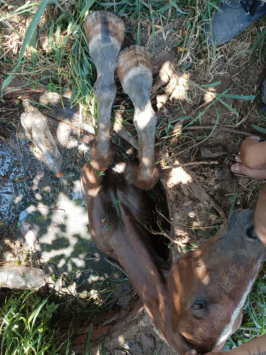 Villa Ángela: UN CABALLO CAYÓ A UN POZO Y LOS BOMBEROS CON GRAN ESFUERZO LO RESCATARON