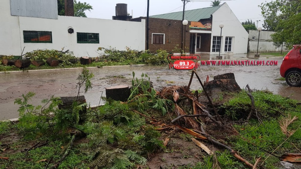 Como consecuencia de la intensidad de la tormenta se registraron numerosas caídas de árboles y ramas de gran porte, así como corte de cables y caída de postes de electricidad y teléfono.