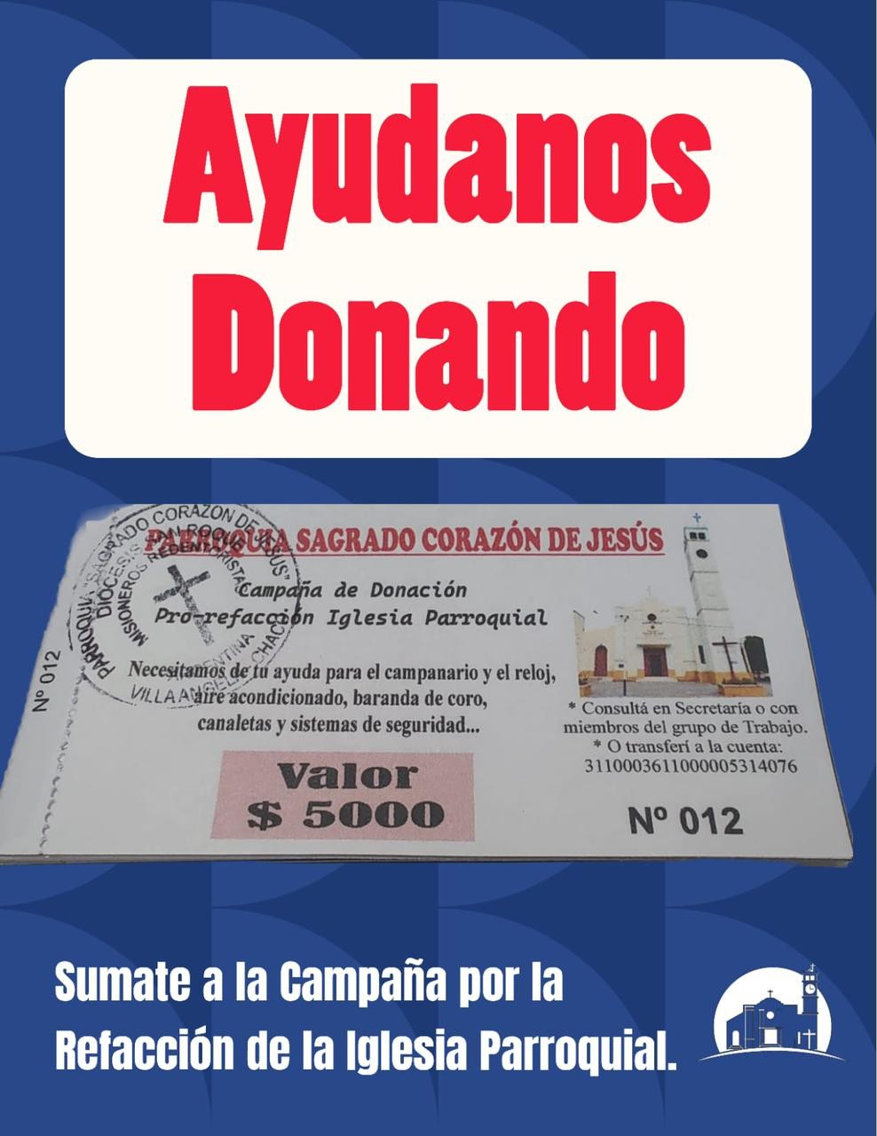 Villa Ángela: AYUDANOS DONANDO | El grupo de trabajo de la Parroquia “Sagrado Corazón de Jesús” continúa con la campaña para finalizar las refacciones de la sede