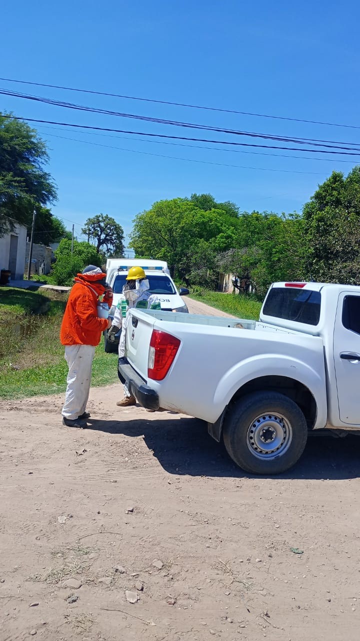 En el lugar se hizo presente, Personal de la División Bomberos con el equipo de trabajo especial abejas. Se hicieron presentes Director DZIVA - Marcelo J. Kostecki y Supervisora Zona X° Int. Crio. Mayor Yolanda W. Jara, Fiscal en Turno a/c Equipo Fiscal N° 1 a/c Dra. Gisela OÑUK y el Ayte. Fiscal, Marcela Gigena. También, se hicieron presentes Personal del Gabinete Científico del Poder Judicial y Personal de la División Criminalística, quienes se abogan a sus tareas pertinentes.