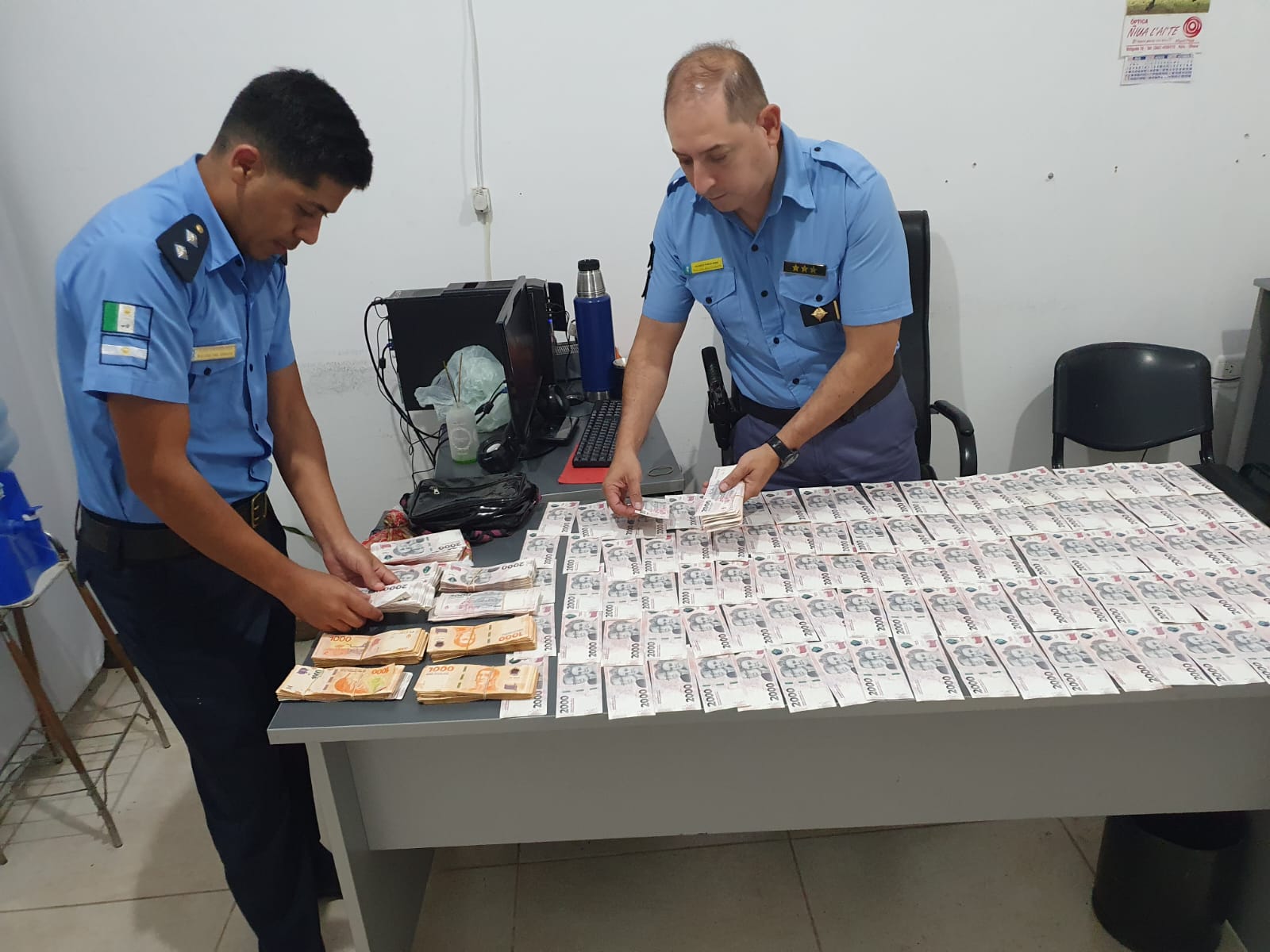 La investigaci�n permiti� dar con uno de los presuntos autores en el barrio San Martin. Posteriormente interceptaron a otro de los implicados en el barrio Vivero Sur, que al ser interceptado, confes� espont�neamente estar en posesi�n de parte del dinero robado, entregando voluntariamente $1.801.000 a las autoridades.
