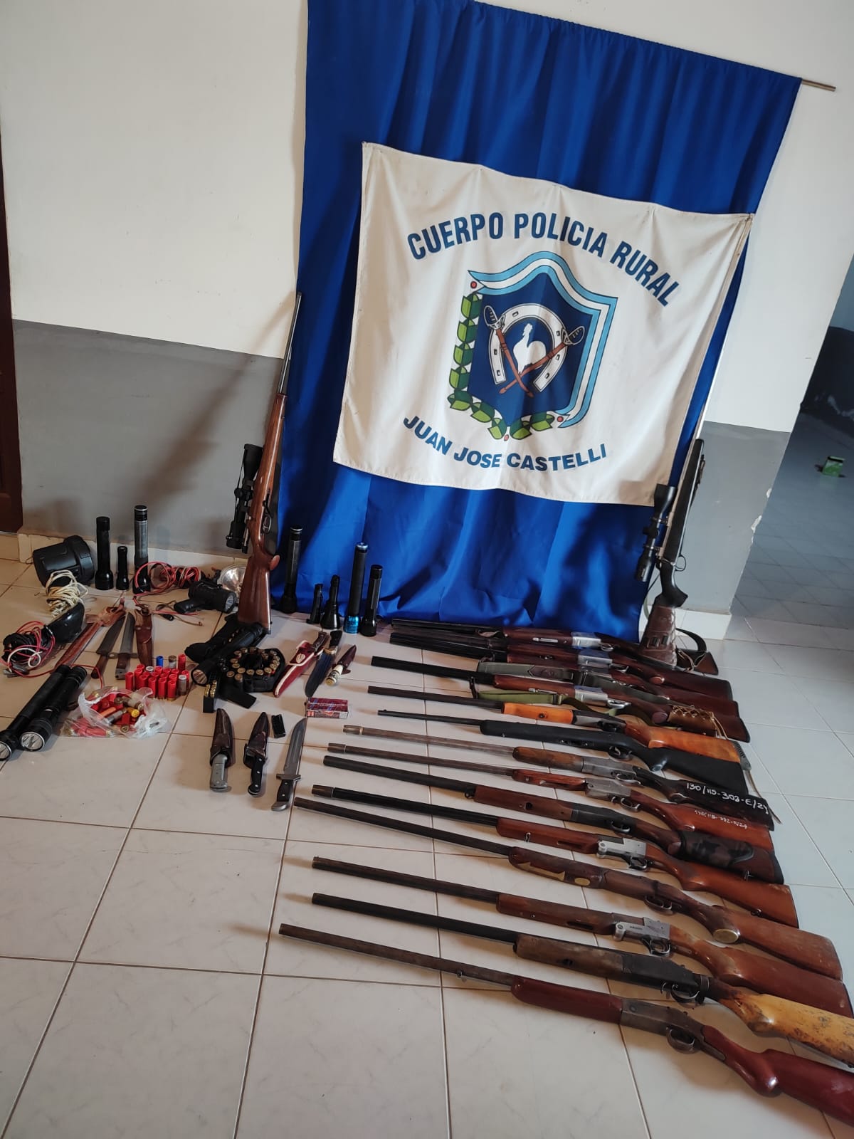 Los efectivos de la Polic�a Rural de Juan Jos� Castelli, implementaron varios operativos en lugares estrat�gicos con la misi�n de cuidar la fauna chaque�a. En el lapso del lunes hasta el domingo incaut� un arsenal de armas y otros elementos.