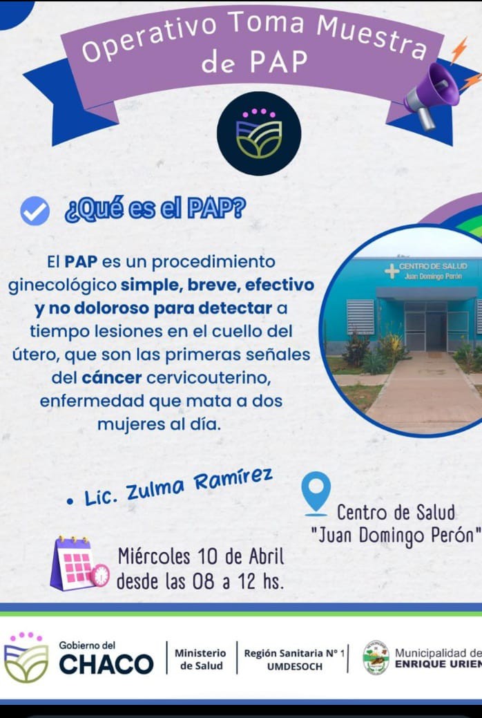 Enrique Urien: TRAS UN AMPLIO OPERATIVO DE SALUD | Este miércoles se realizará una jornada de toma de muestras de PAP