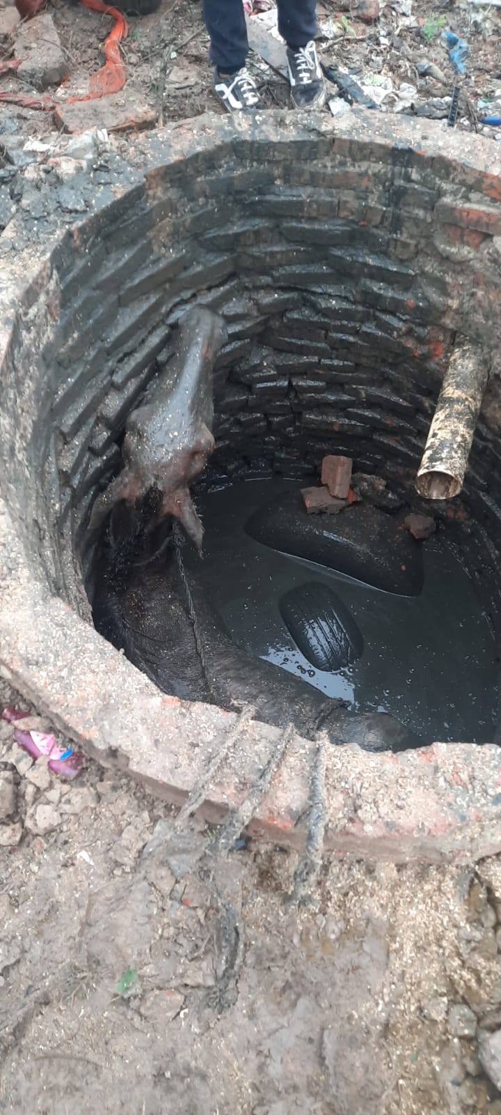 Esta mañana, los agentes de la División Bomberos de Villa Ángela fueron alertados sobre un equino que había caído a un pozo en Ayacucho y Quebracho.