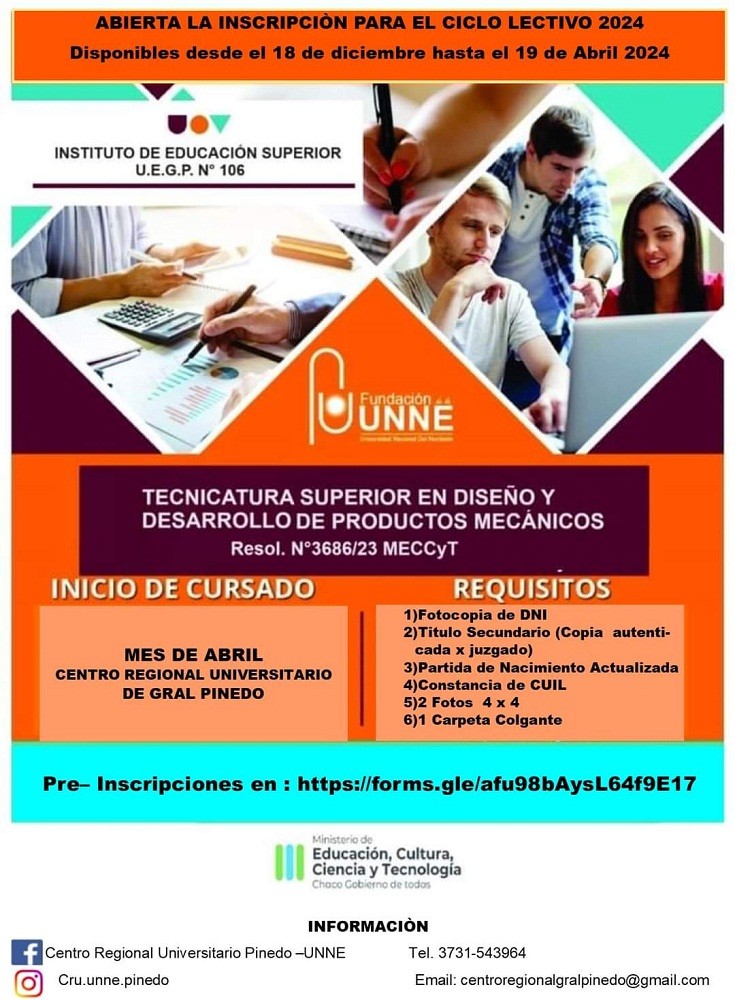 Nueva oferta académica de la UNNE: EN VILLA ÁNGELA EL CRU DE GENERAL PINEDO PRESENTÓ LA TECNICATURA SUPERIOR EN DISEÑO Y DESARROLLO DE PRODUCTOS MECÁNICOS