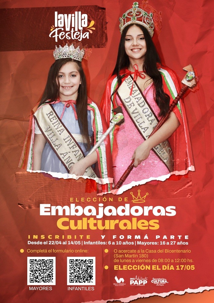 La elección de la Embajadora Cultural 2024, se va a llevar adelante el día viernes 17 de mayo en la Casa del Bicentenario, tendrá un amplio recorrido con todo lo que es la historia de la ciudad y las chicas que deseen inscribirse podrán acercarse a la Casa del Bicentenario o bien de forma online, ya que en la paginas de la secretaría de cultura encontraran los link y QR para dichas inscripciones. Además, podrán realizar todas las consultas y recibir el asesoramiento necesario tanto de los organizadores, coordinadores y embajadora saliente quien les podrá compartir respecto a su experiencia vivida.