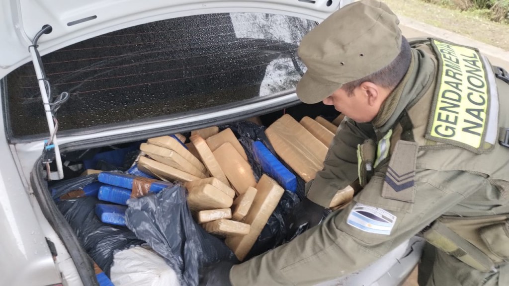 Durante el registro del asiento trasero y el baúl del vehículo, los uniformados detectaron bolsas que tenían paquetes rectangulares, "similares a los utilizados para el traslado de estupefacientes, los cuales contenían una sustancia amarronada", explica el parte.