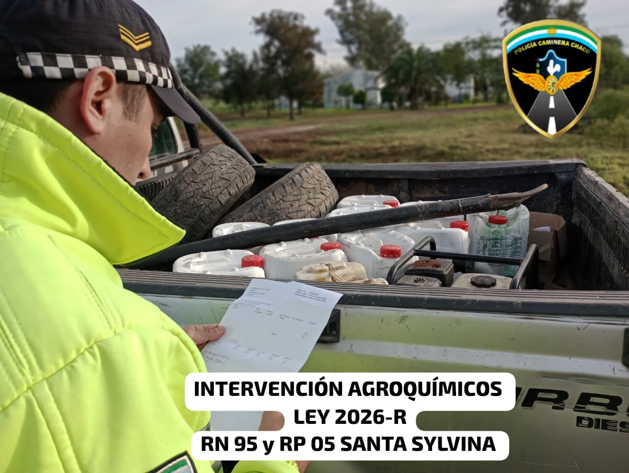 En primer lugar detuvieron un veh�culo y su conductor trasladaba 500 litros de gaso�l y en posteriormente constataron 200 litros de productos agroqu�micos. Los mismos sin contar receta agron�mica de expendio. Adem�s, no contaban con Receta Agron�mica de expendio que ampare su carga, sin Revisi�n T�cnica habilitante, sin pictogramas y paneles de seguridad. Por tal motivo, se les notific� por la ?Supuesta Infracci�n a la Ley N� 24.449? y Resoluci�n 698/13 que refiere a "condiciones m�nimas para el transporte de productos agroqu�micos? y complementa a la vigente Ley Prov. 2.026-R (ex 7.032/13 de biocidas). Por tal motivo, dieron intervenci�n a la Subsecretar�a de Ambiente y Biodiversidad, para seguir con las actuaciones correspondientes.