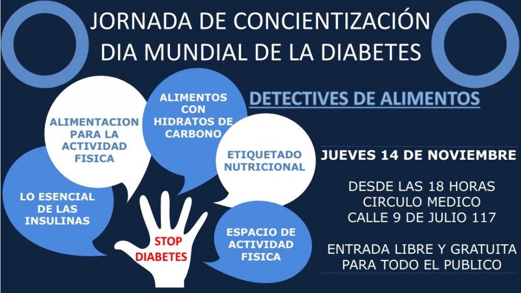 Este jueves 14 de noviembre se conmemora el Día Mundial de la Diabetes, por este motivo se concretarán actividades para concientizar sobre la enfermedad. La jornada se realizara a partir de las 18:00, en el círculo médico, y contara con un equipo de profesionales del área de la salud.