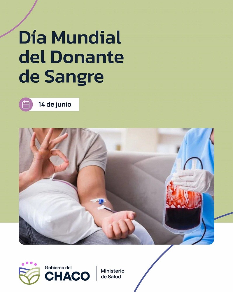 Este año el lema de la Organización Mundial de la Salud (OMS) es “20 años celebrando la generosidad: ¡Muchas gracias, donantes de sangre!” en una campaña donde se busca dar las gracias a las personas de todo el mundo que salvan vidas con sus donaciones, a la vez que plantea un llamado a la acción para motivar a que más personas se unan al movimiento mundial de donación de sangre.     Ministerio de Salud del Gobierno del Chaco.-