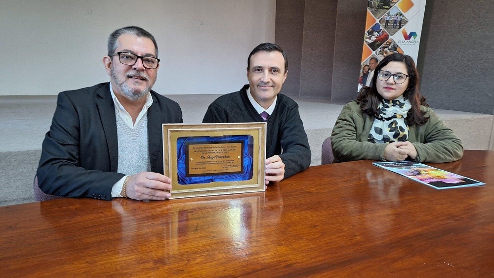 Esta mañana y tras haberse conmemorado ayer 26 de junio, el Día Internacional de la Lucha Contra el Uso Indebido y el Tráfico Ilícito de Drogas, el Presidente del Concejo Municipal de Villa Ángela, Guillermo Buyatti junto al edil, Valeria Castillo, realizaron la entrega de una placa de reconocimiento por su labor, al Dr. y Ayudante Fiscal de Anti Menudeo, Hugo Fedorchuk.