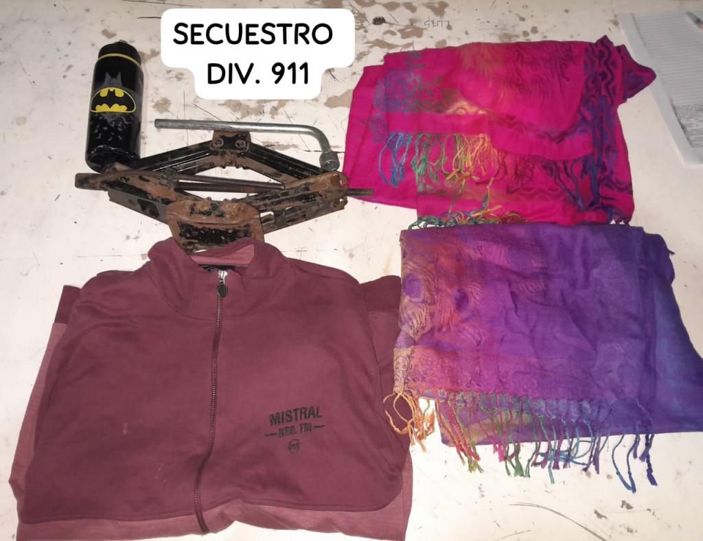 Mediante un llamado telefónico a la Sala de Emergencias, hoy miércoles a las 00:15 horas, solicitaban presencia policial por calle Santa Cruz. Al llegar al lugar los uniformados de la División 911, se entrevistan con un hombre de 51 años quien manifestó ver a un sujeto en su patio y al ver su presencia, éste se dio a la fuga dejando abandonada una bolsa conteniendo, una campera Mistral, un Cricket tipo tijera, una llave saca tuercas, una botella de agua de metal y dos bufandas de dama.