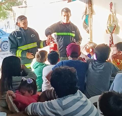La División Bomberos de la Localidad asistió a un merendero de la localidad e informaron a los más chicos las funciones del bombero y cómo actuar ante siniestros.