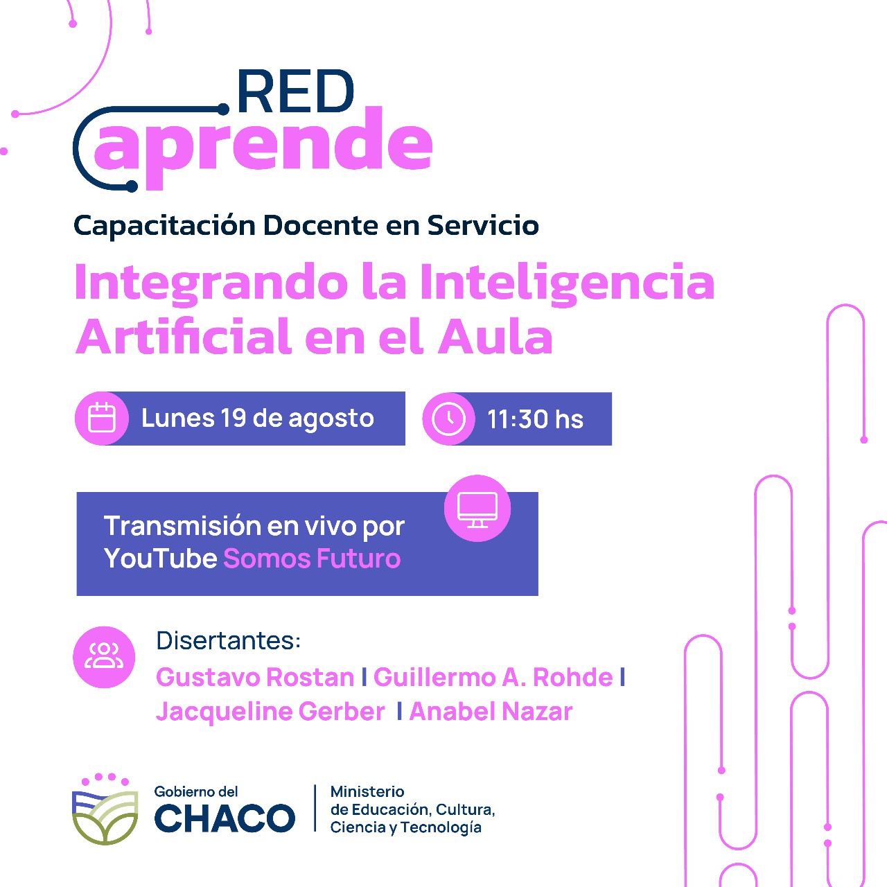Este lunes 19 de agosto se ponen en marcha otras dos propuestas de capacitaci�n docente de Red Aprende. A las 9,15, m�s de 2.300 mil bibliotecarios de toda la provincia comenzar�n a cursar ALFIN desde las Bibliotecas, trayecto dise�ado por la Direcci�n de Servicio Bibliotecario Provincial, y que estar� a cargo de Laura Palomino, Alejandro Micalucci, Paula Morello y Luc�a Peyrou, docentes y especialistas de la Biblioteca Nacional de Maestros. A continuaci�n, a las 11,30 ser� el turno de los docentes de la modalidad T�cnico Profesional, con la capacitaci�n Integrando la Inteligencia Artificial en el aula, a cargo del equipo de la Subsecretar�a de Ciencia y Tecnolog�a del Ministerio de Educaci�n; este trayecto tiene hasta el momento m�s de 6 mil inscriptos.