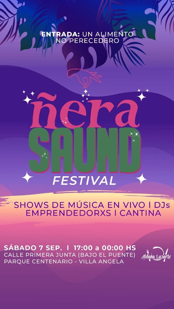 Aldana Lazarte, organizadora de Ñera Saund Festival invitó a la comunidad a participar de este evento musical con perspectiva de género que se realizará el sábado 7 de septiembre en la calle Primera Junta, debajo del puente del Parque Centenario a partir de las 17:00 hasta las 23:00 y la entrada consta de un alimento no perecedero que se destinará al merendero "Mujeres en Lucha" del Lote 20