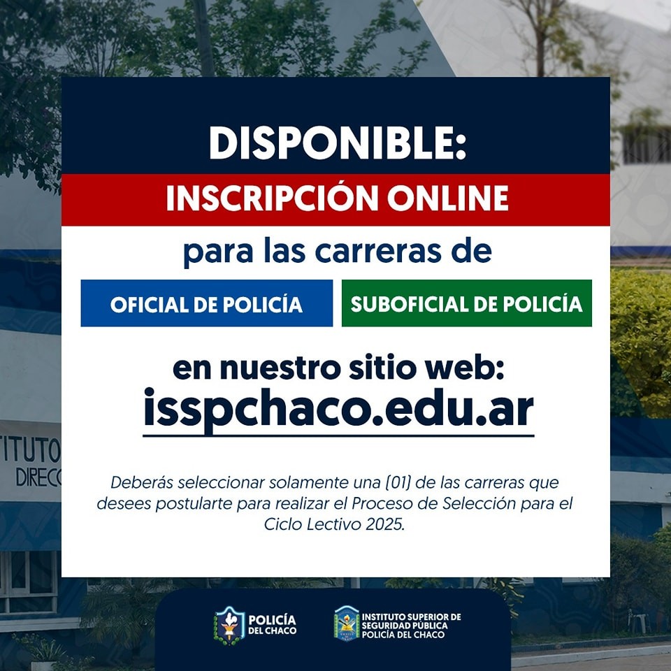 • Modalidad presencial: Instituto Superior de Seguridad Pública (Av. Coronel Falcón 350, Resistencia, Chaco).REQUISITOS DE INSCRIPCIÓN