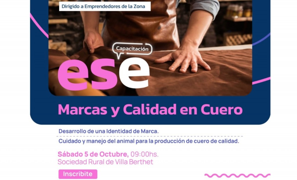 Villa Berthet: EL SÁBADO 5 DE OCTUBRE SE REALIZARÁ UNA CAPACITACIÓN SOBRE MARCAS Y CALIDAD EN CUERO EN LA SOCIEDAD RURAL