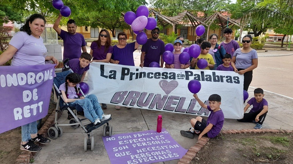 Esta mañana y en el marco del Día Mundial del Síndrome de RETT, Luciana, mamá de la niña Brunella, convoco a la comunidad al predio del Centenario, para hacer un llamado de concientización a la sociedad y poner en conocimiento, en que consiste dicha enfermedad, considerada “no frecuente”.