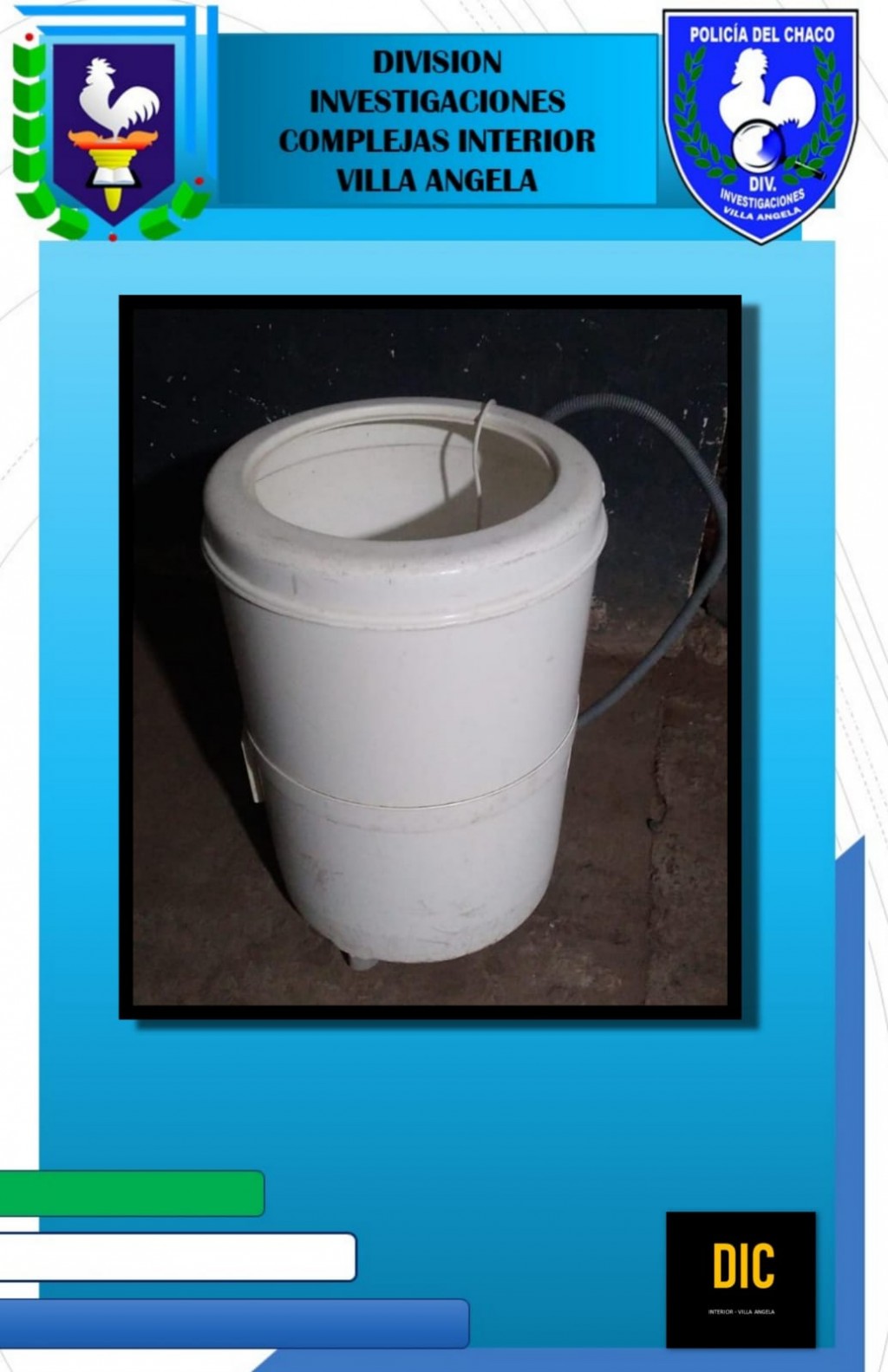 Villa Ángela: TRAS DÍAS DE INVESTIGACIÓN RECUPERAN UN LAVARROPAS ROBADO DE UN DOMICILIO
