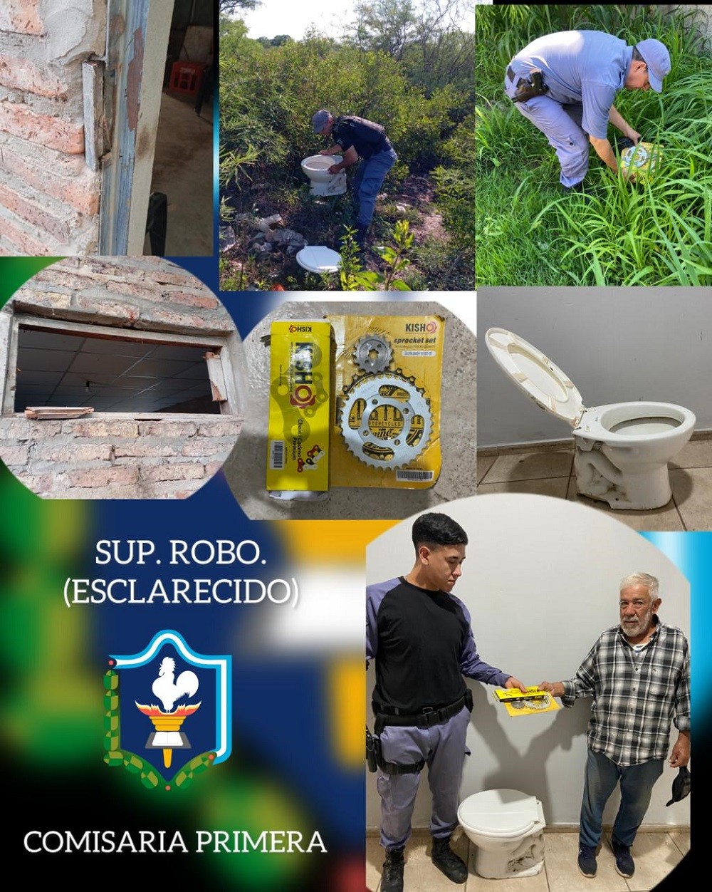 Se procedió al secuestro de un inodoro blanco marca Ferrum y un juego de transmisión que fueron restituidos al dueño. Se trata de dar con la aprehensión del supuesto autor que ya fue identificado por los efectivos.