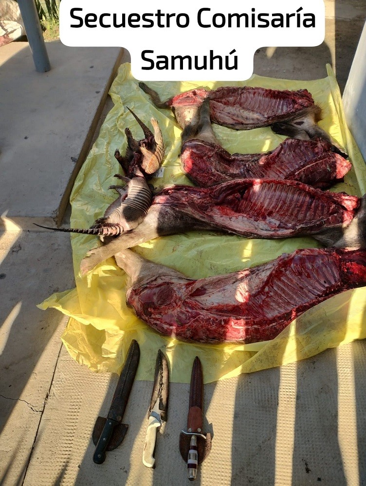 Se labró la correspondiente acta de constatación y secuestro de los elementos, dando intervención a la Dirección de Fiscalización de Ambiente (Subsecretaría de Ambiente) Resistencia, a/c Coordinador Gral Sr. Máximo Llopiz. El cual dispuso que los causantes, sean notificados de la infracción a la Ley 1429-R (MANEJO DE LOS RECURSOS DE LA FAUNA SILVESTRE Y LA CAZA), e incineración del producto cárnico, mientras las armas mencionadas, serán remitidas junto actuaciones Organismo referido.