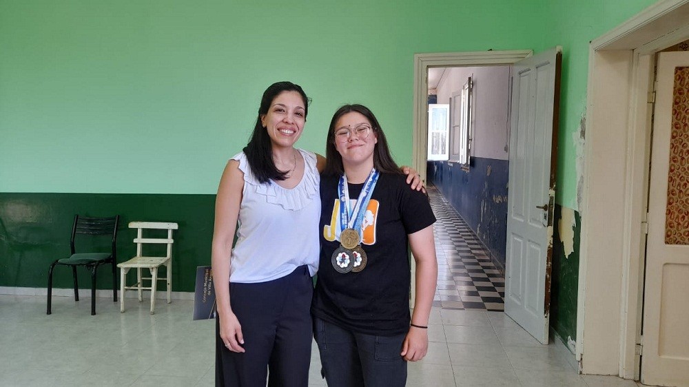 La profesora explicó que "se destacó especialmente, a Adriana quien integra la selección Argentina, participamos de 13 torneos este año, y ella en el nacional apertura fue la única campeona argentina. Después, en lo que es a nivel nacional fuimos campo de entrenamiento, fuimos torneo nacional que se hizo en Salta y culminamos con el clausura que se hizo en Jujuy, donde ella quedó segunda y los Juegos Evita, donde es campeona nacional".