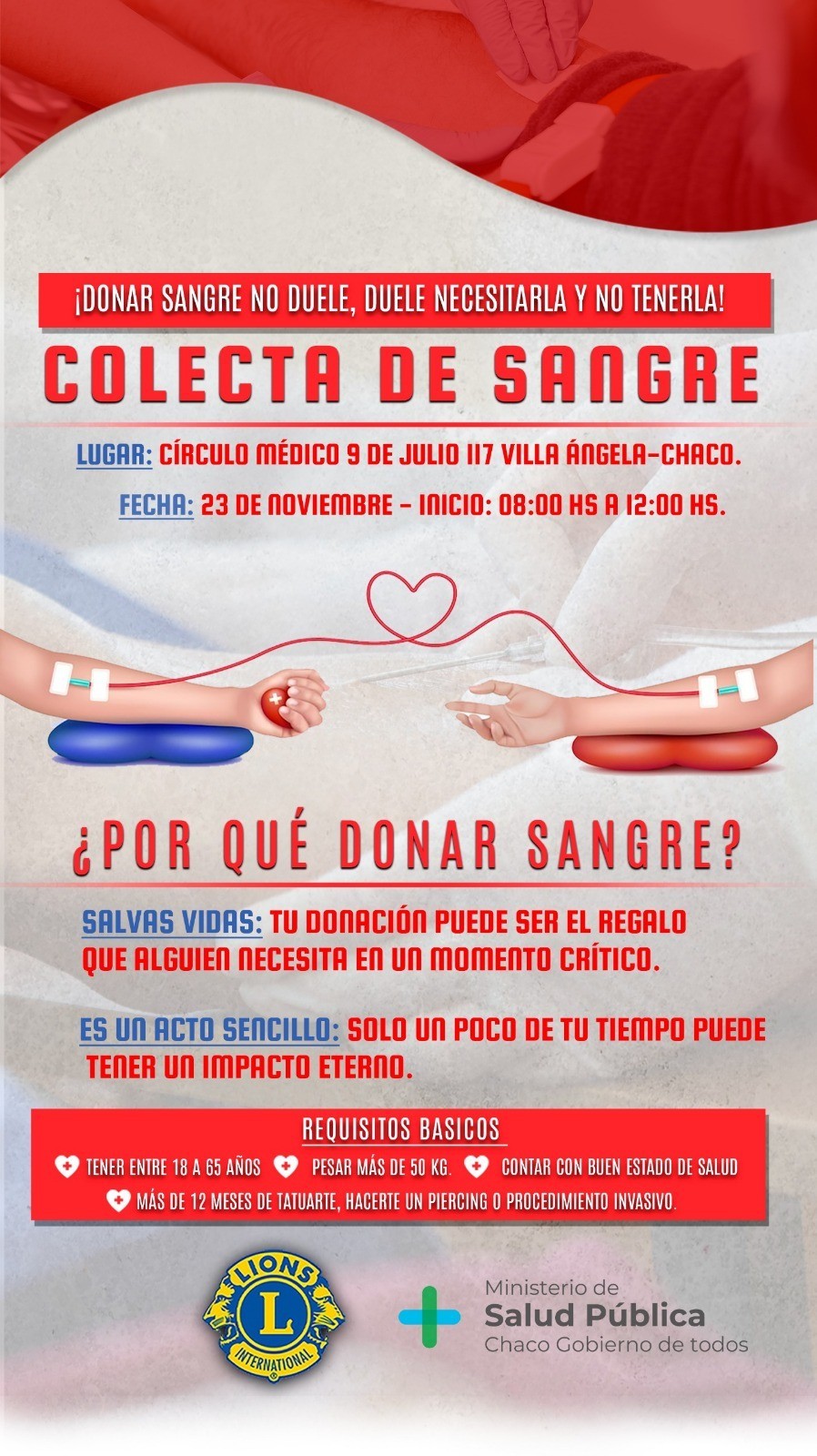 Villa Ángela: CLUB DE LEONES CONVOCA MAÑANA SÁBADO 23 A PARTICIPAR DE LA CAMPAÑA DE EXTRACCIÓN DE SANGRE EN EL CÍRCULO MÉDICO