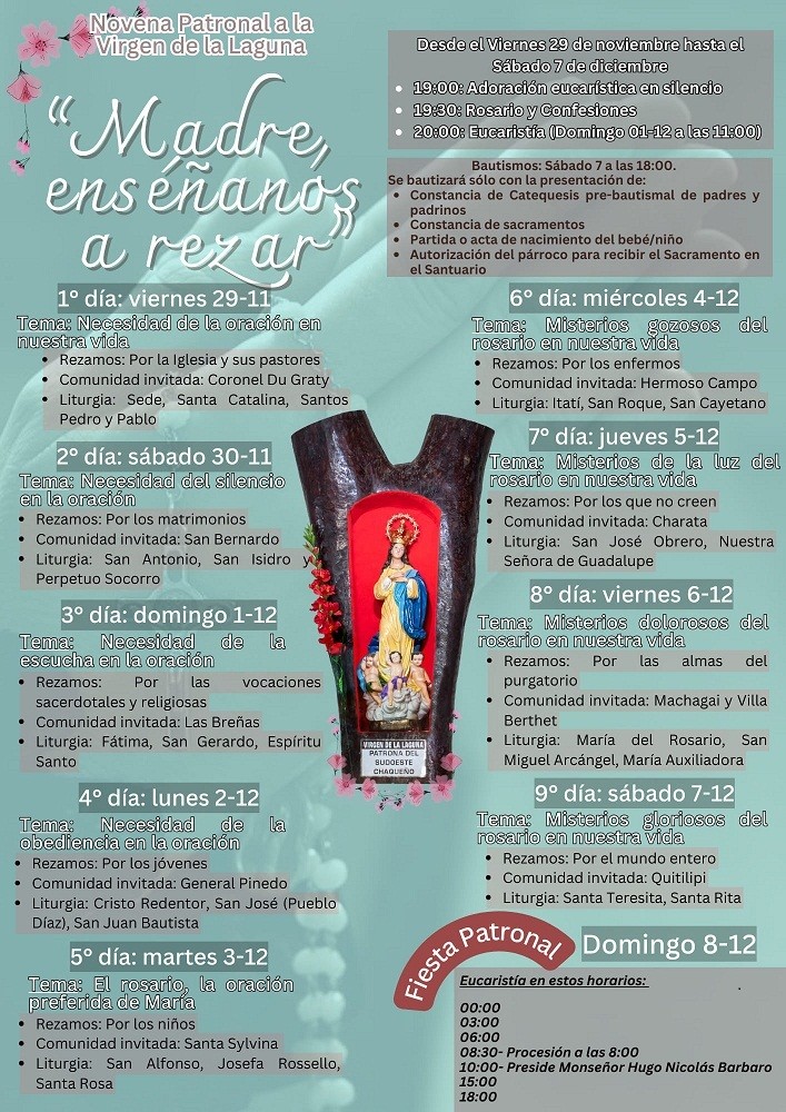 Villa Ángela: CRONOGRAMA 2024 DE LA NOVENA A LA "VIRGEN DE LA LAGUNA"
