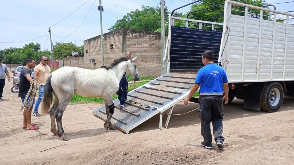 Asimismo tomó intervención en el caso el veterinario policial quien verificó la salud del equino para posteriormente ser trasladado a un lugar donde recibirá un mejor cuidado