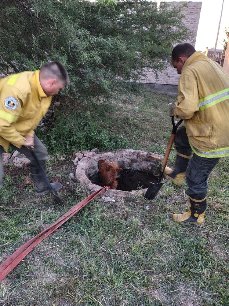 Ayer a las 19:45 horas, personal de bomberos fue solicitado en el B° Tupac, Mz.10 PC.18 de nuestra ciudad, donde habría un animal equino, atrapado en un pozo.